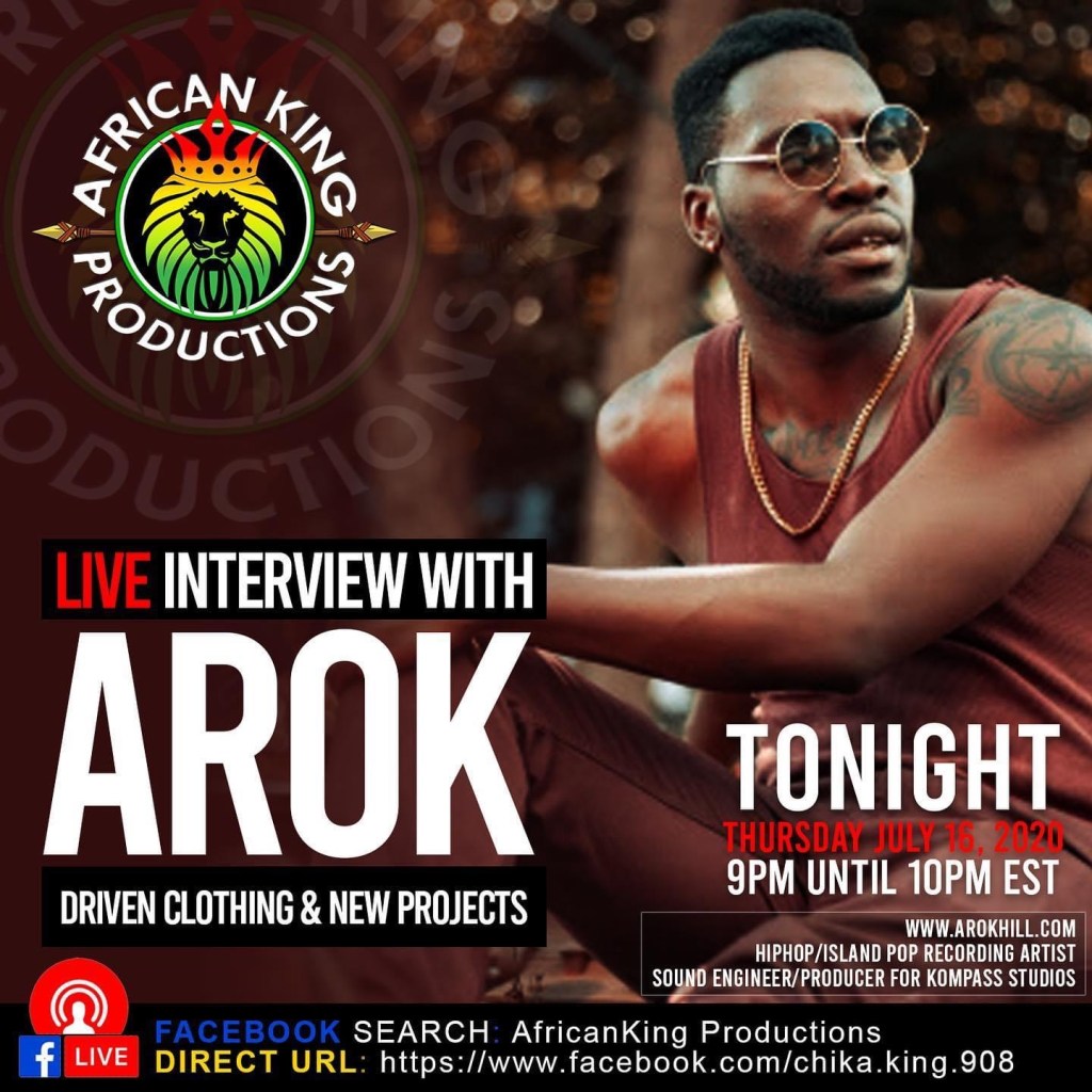 Recently, the one and only Arok Hill sat down and interviewed with Uzo of African King Productions on FaceBook LIVE. In this interview Uzo and Arok discuss Arok’s new, recently launched Clothing Brand: DrivenClo, LLC, as well about Arok the Artist and talk about his music. This interview is fire, it’s lit, and dope. See for yourself and check it out here!!!