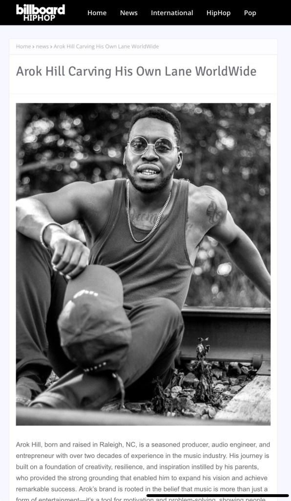 Press Articles! 📝 BILLBOARD: Arok Hill Carving His Own Lane WorldWide: Read More Here! From Music to Lifestyle: Arok Hill’s Inspiring Creative Journey View at Medium.com 2025’s Most Improved Hitmakers